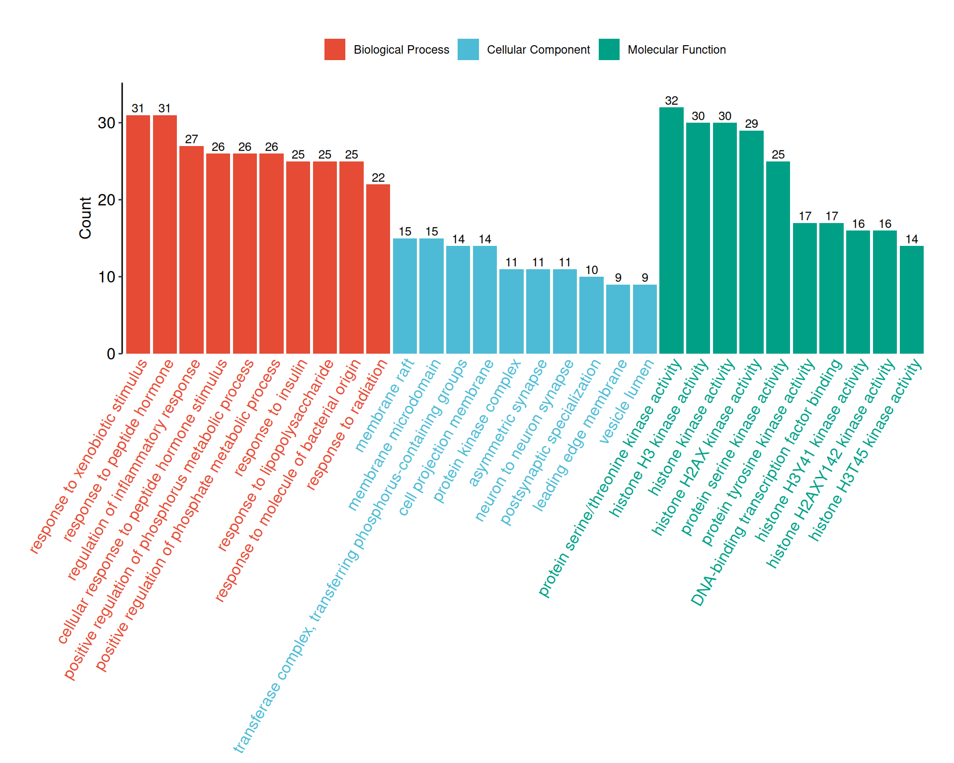 - BP (Biological Process): biological objectives to which a gene contributes (e.g., apoptosis, signal transduction).