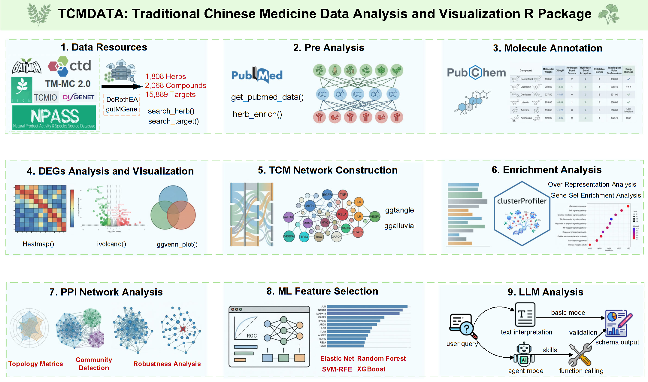 TCMDATA is an integrated R package for TCM pharmacology data retrieval, network analysis, and visualization.