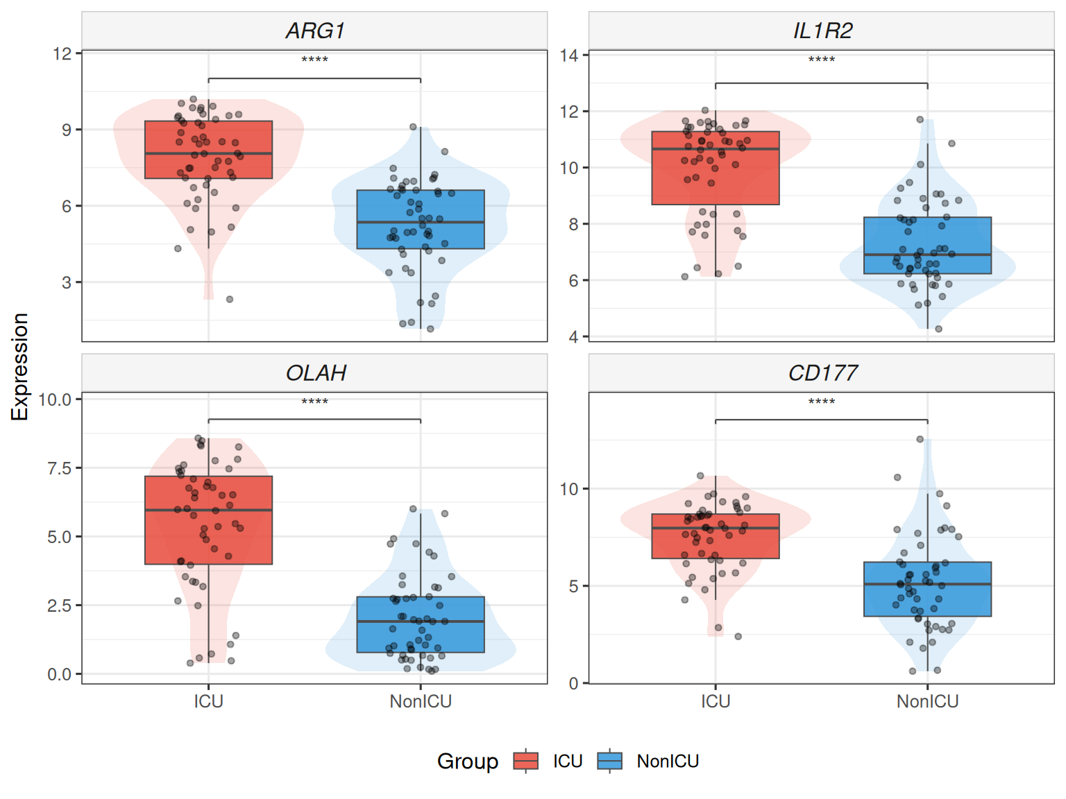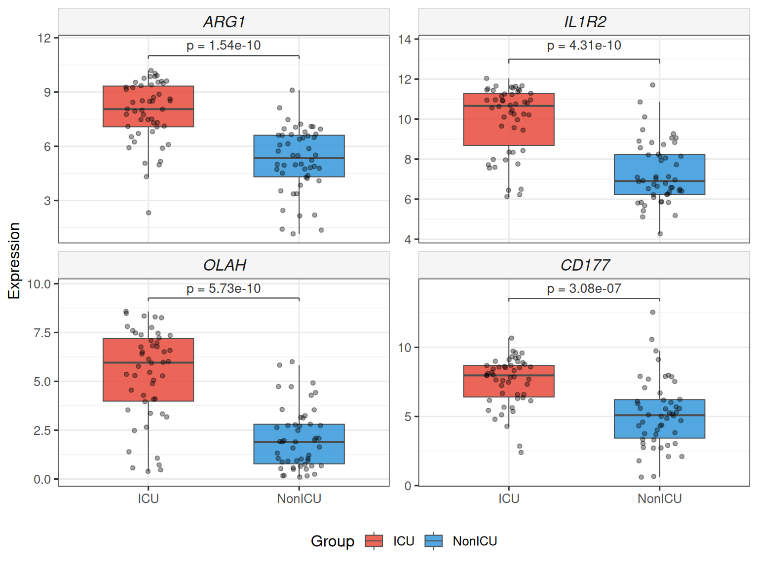 Throughout this chapter we use the built-in covid19 dataset, which contains RNA-seq expression profiles from 100 COVID-19 patients (GSE157103). Samples are labelled as ICU (intensive care unit) or NonICU, providing a clinically relevant binary classification task.