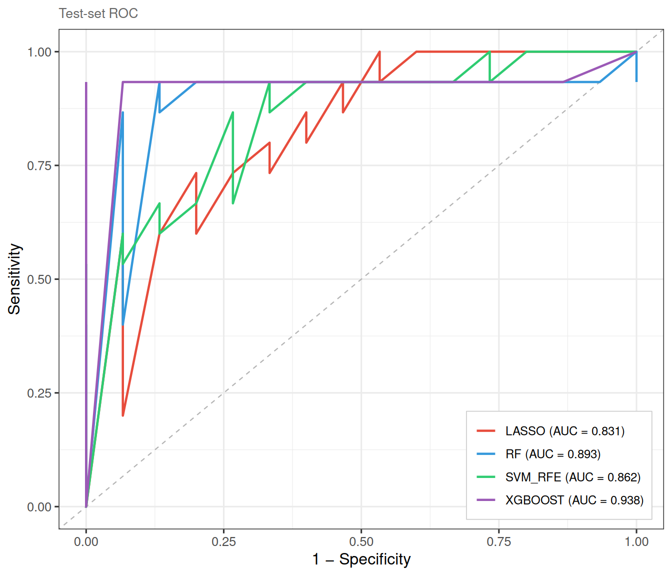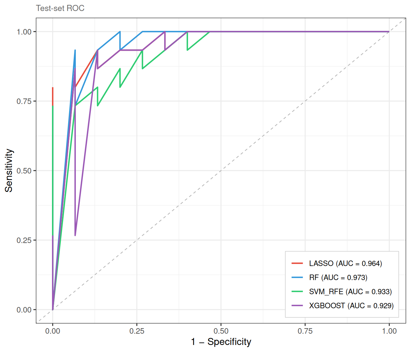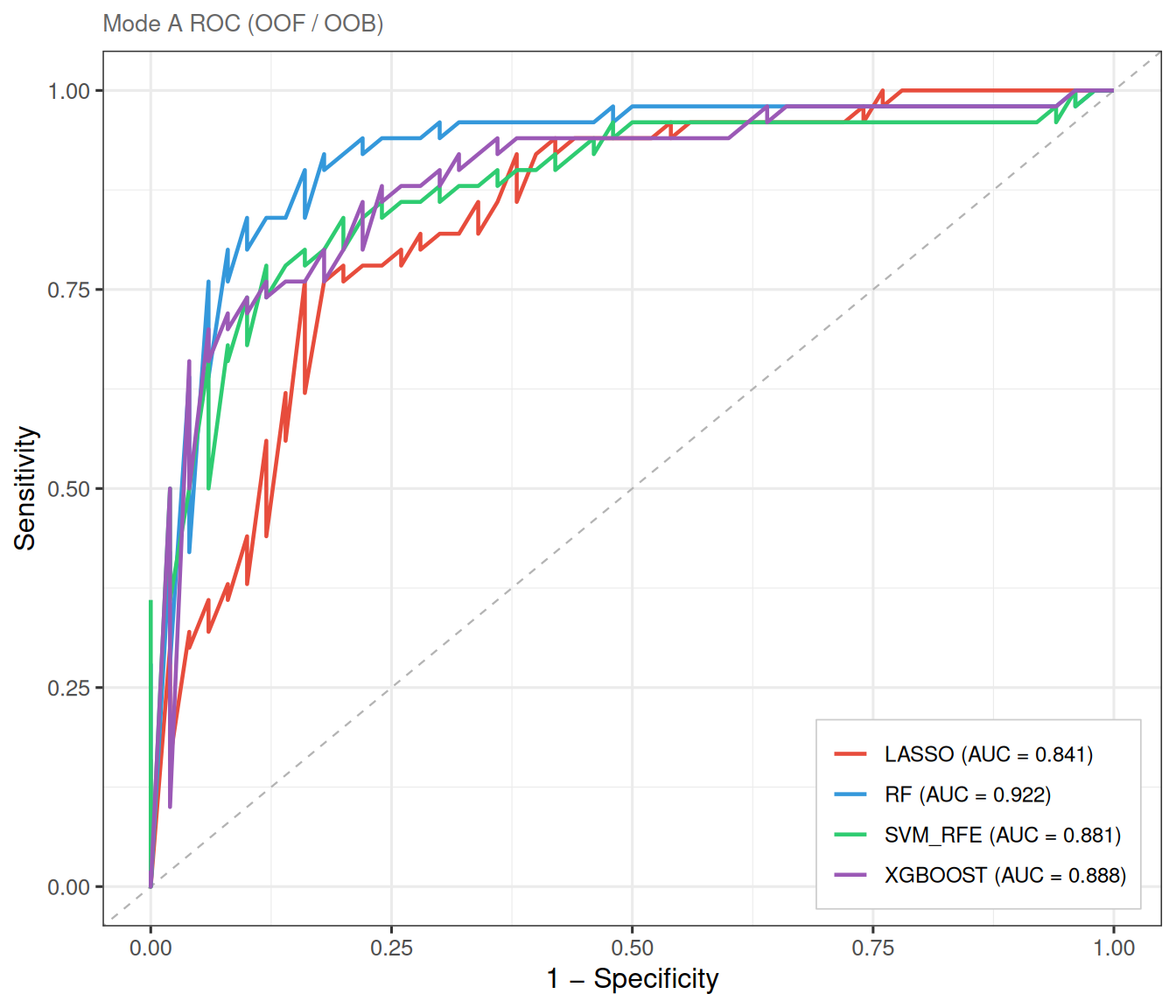 #> Features: 19 | CV AUC: 0.9216 | Sens: 0.8400 | Spec: 0.8400