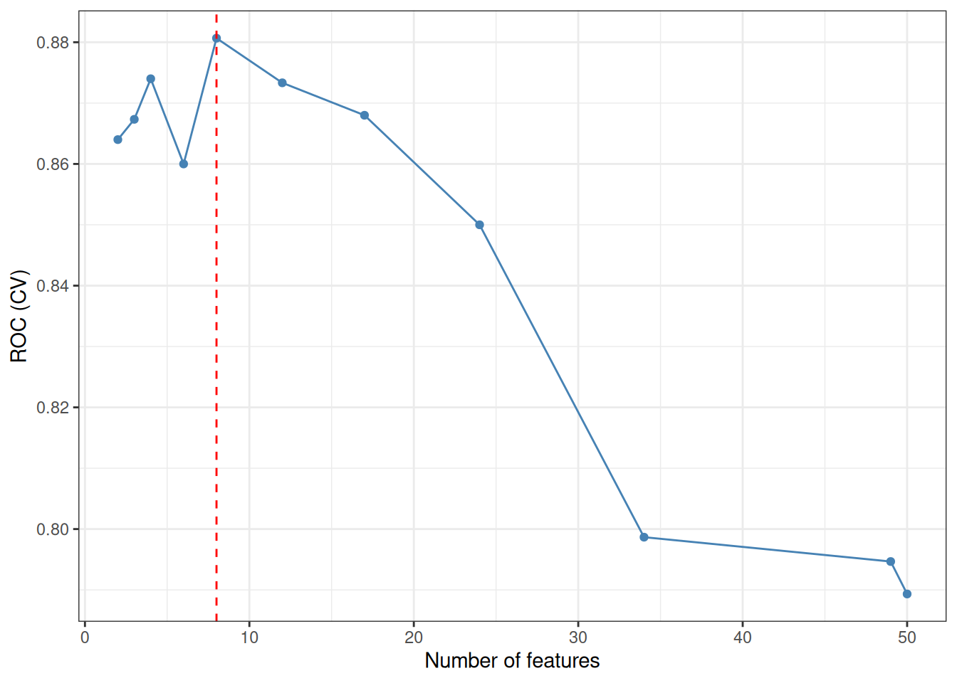 #> svm_rfe svm_rfe 12 CV 0.8812000 0.06489222 0.84